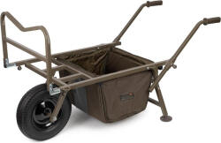 Fox Voyager Barrow – praktikus, alacsony profilú horgász talicska A Fox Voyager Barrow ideális választás azoknak a horgászoknak, akik sok felszereléssel mozognak a vízparton, de nem akarnak kompromisszumot kötni a stabilitás, a pakolhatóság és a szállíthatóság terén. Az alacsony profilú kialakításnak köszönhetően a súlypont közelebb kerül a talajhoz, így a talicska stabilabb és könnyebben irányítható , még megpakolt állapotban is. A rakodótér gyorsan és egyszerűen meghosszabbítható , így a rövidebb felszereléstől a hosszabb botzsákokig mindent kényelmesen elnyel. Az állítható magasságú, levehető fogantyúk ergonomikus markolatokkal készültek, hogy hosszabb távon is kényelmes maradjon a tolás, akár egyenetlen terepen is. A gyorskioldós kerékrendszer megkönnyíti a szállítást és a tárolást – a talicska könnyedén befér a legtöbb személyautó csomagtartójába. A masszív, nagy teherbírású acélváz komoly terhelést is gond nélkül elbír, a hurkos hevederrögzítő pontok pedig lehetővé teszik a felszerelés stabil rögzítését gumikötelekkel vagy spaniferekkel. A terepen való biztos megállást a széles, szegecselt sártalpak garantálják, míg a felfújható gumiabroncs és csapágyazott kerék könnyű gurulást biztosít puhább talajon, homokon vagy sárban is. A csomag része egy „drop-in kialakítású, alul elhelyezhető talicskatáska , amely oldalsó cipzárakkal segíti a gyors hozzáférést a kisebb kiegészítőkhöz. Főbb jellemzők